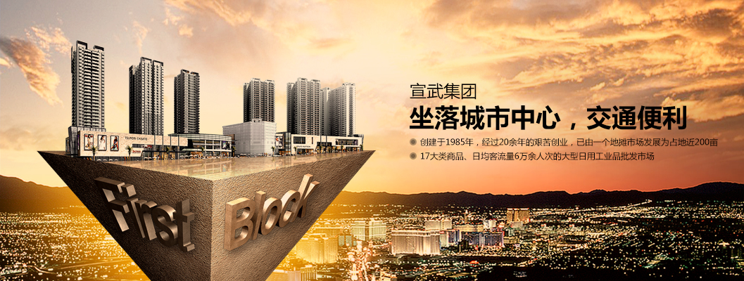 徐州宣武集團有限公司成立于1985年,占地100余畝,建筑面積26萬平方米,有商鋪8000余間,從業人員3.5萬余人。經營服裝、鞋帽、針織、百貨、電子電器、文體辦公、床上用品、鐘表眼鏡等十八大類商品,具有貨源足、品種全、信息靈、價格廉、信譽好的經營特色,輻射淮海經濟區,年交易額達200余億元。為全國具有知名度和影響力的大市場之一。被徐州市政府確定為重點批發(fā)市場、重點財源培育單位和超百億元重點培育市場。